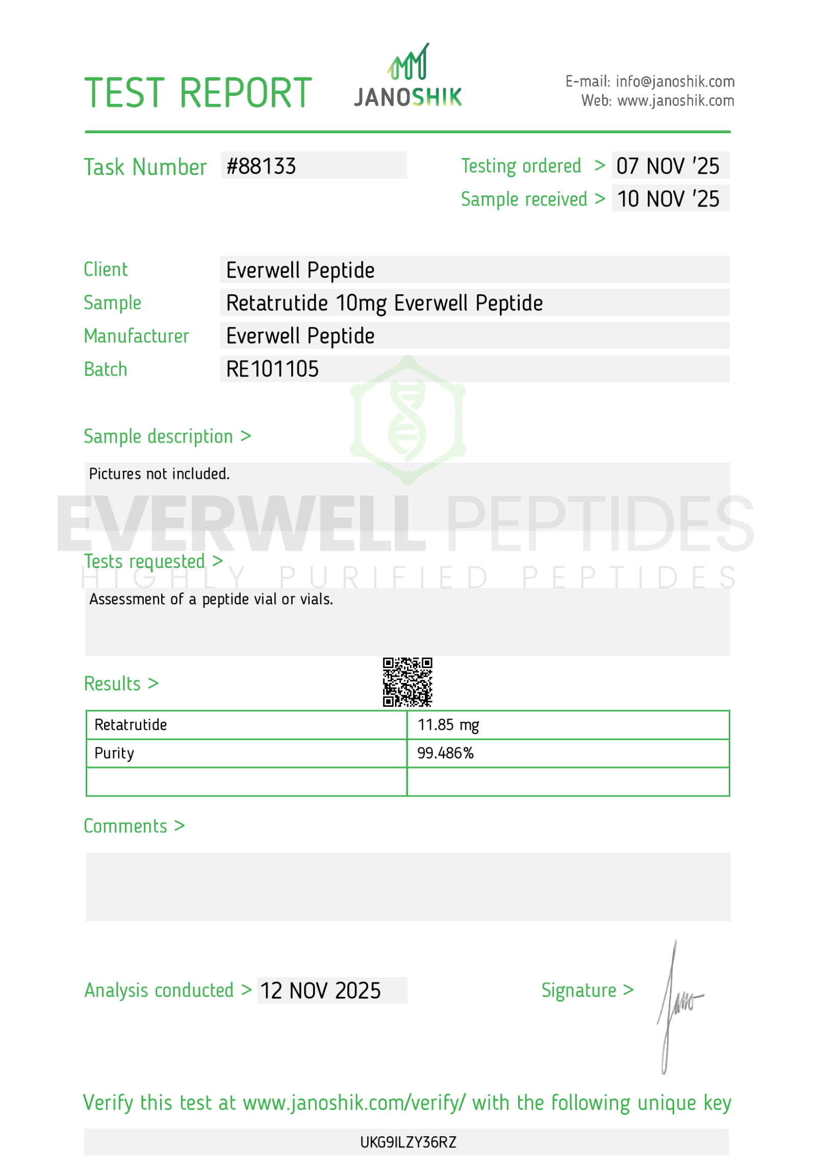 All Everwell Peptides products are provided in lyophilized (powder) form for maximum stability and must be reconstituted before laboratory use. Products are intended strictly for in-vitro research purposes only. They are not approved for human or veterinary use, and no dosing information is provided.